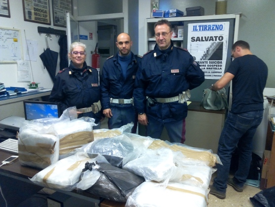 Il successivo controllo quantitativo e qualitativo, effettuato alla polizia scientifica del Commissariato di Viareggio, permetteva di confermare che si trattava di marijuana per un peso complessivo lordo di 29,9 chili. I due giovani sono stati arrestati in attesa del processo per direttissima.