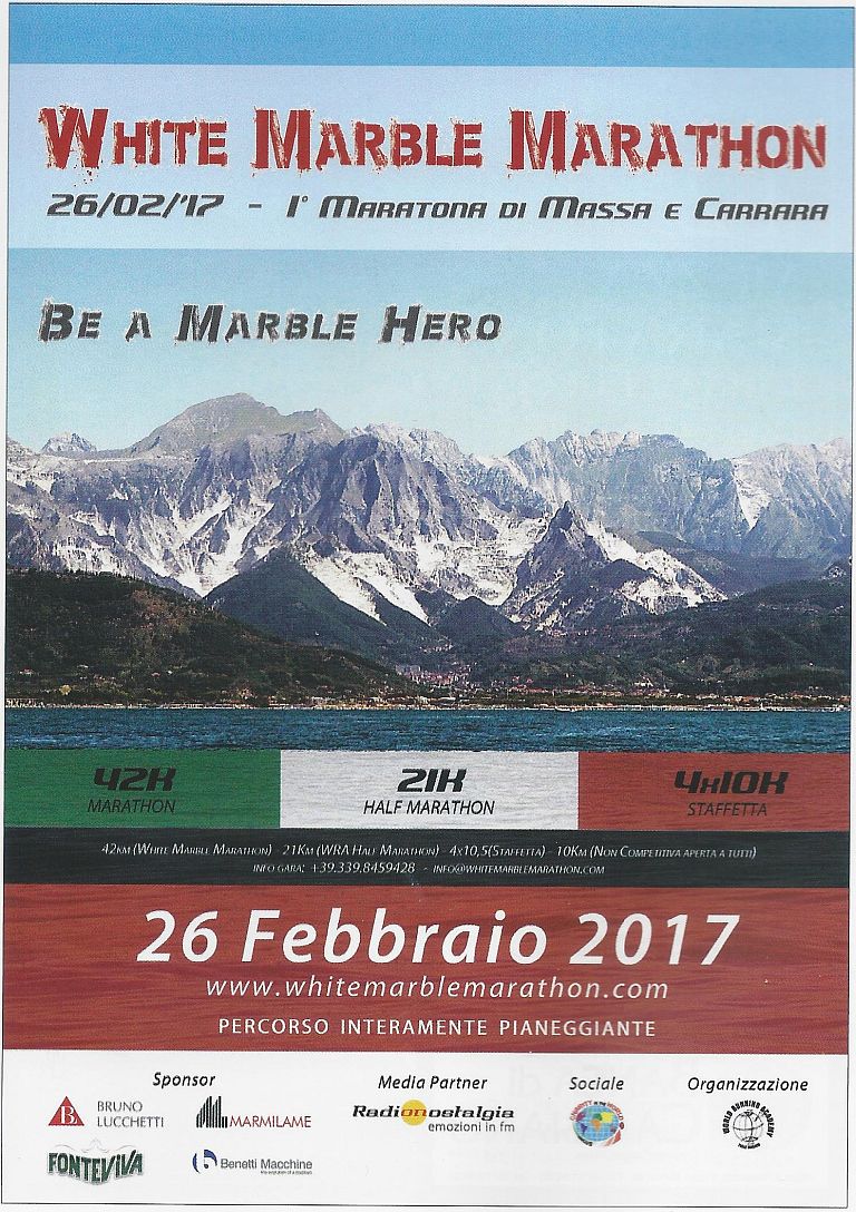 Quarantadue chilometri e 195 metri di passione. Conto alla rovescia per la prima edizione della “White marble marathon” al via domenica 26 febbraio dalle ore 10 fino al primo pomeriggio che porterà migliaia di atleti, professionisti runner ma anche dilettanti e appassionati, lungo un percorso che si snoda da Marina di Carrara attraverso Marina di Massa fino a Cinquale e ritorno.