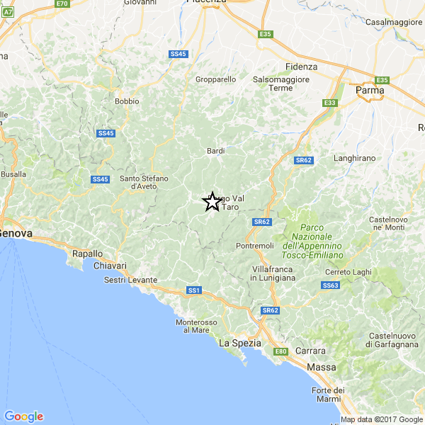 Secondo i rilevamenti dell’Istituto nazionale di geofisica e vulcanologia (Ingv), il sisma ha avuto ipocentro a 5 km di profondità ed epicentro 2 km da Albareto (Parma) e 13 da Zeri (Massa Carrara) e da Varese Ligure (La Spezia).