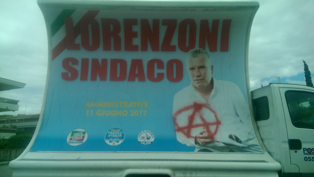 Una azione coordinata contro di noi. In una notte distrutte le vetrate del comitato elettorale della Lega e imbrattate le nostre vele del candidato a Sindaco Maurizio Lorenzoni.