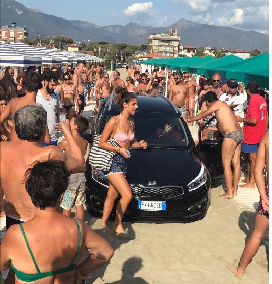 Turista straniero finisce in spiaggia con l’auto per errore, rischia il linciaggio. Era ubriaco. È accaduto a Focette, Marina di Pietrasanta. Il turista, nato a Manchester, ha imboccato a forte velocità il corridoio che porta alla spiaggia tra lo