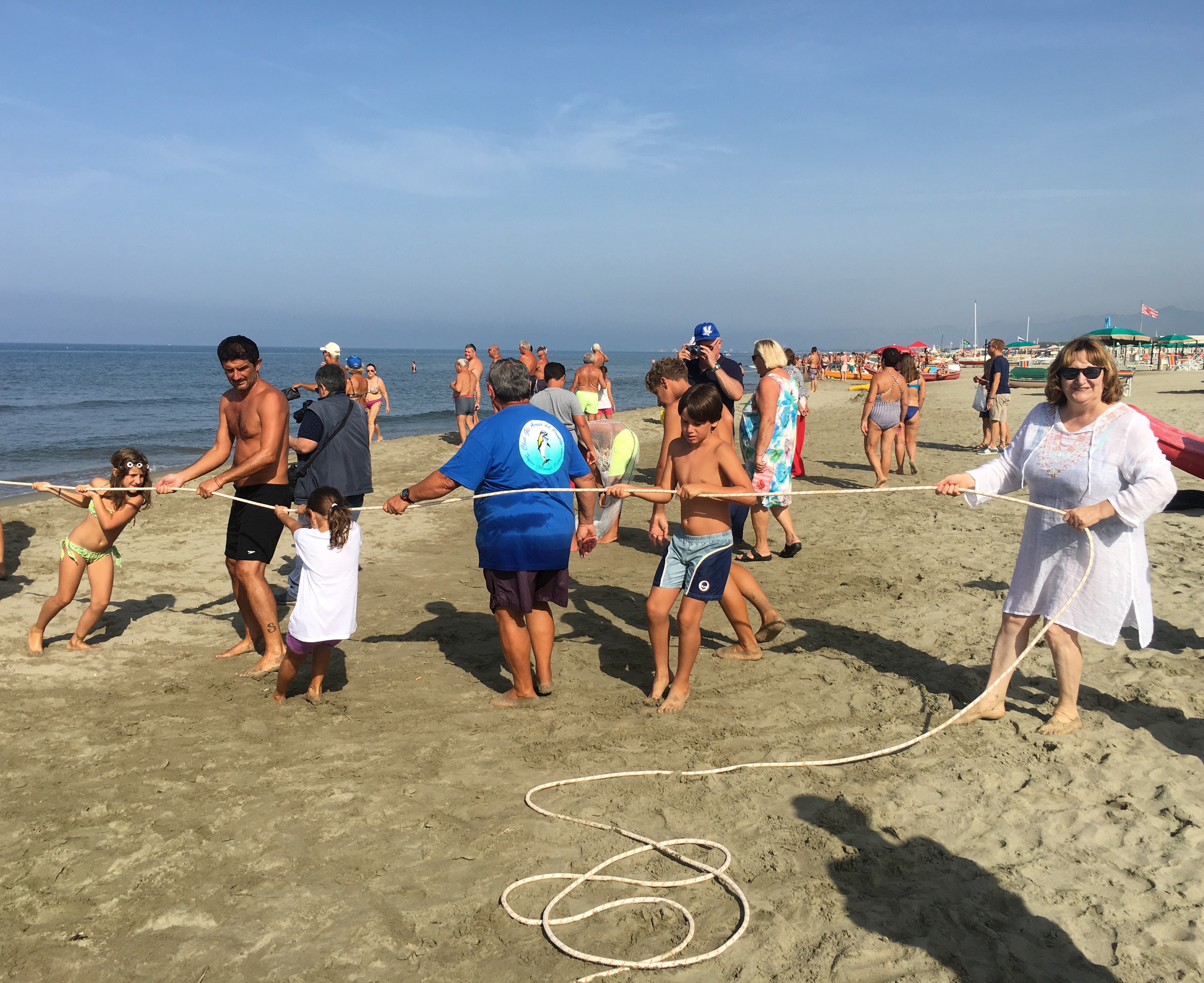 L’antica tradizione della sciabica rievocata ancora una volta sul nostro litorale. Gli Amici del Pontile hanno replicato il successo del primo appuntamento, che aveva richiamato tanti turisti e curiosi sul bagnasciuga. Grande folla di adulti e bambini sulla battigia anche per questa seconda battuta di pesca a strascico, compiuta nel pieno rispetto dell’ambiente, rigettando subito il pescato in acqua per non danneggiare l’ecosistema marino. Pescatori per mestiere e per passione si sono ritrovati sotto il pontile, nello specchio d’acqua di fronte al Bagno Biancamano, per dare il via alle operazioni con l’ausilio del pattino, proprio