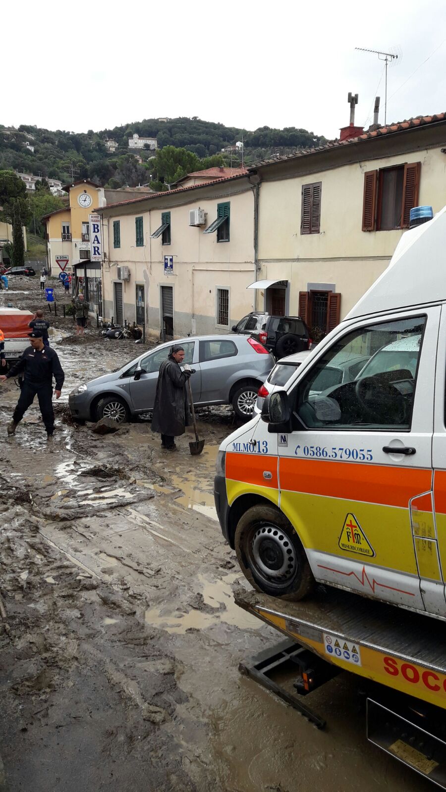 “Abbiamo attivato, di concerto con la sala operativa regionale, la nostra colonna mobile – continua il presidente delle Misericordie toscane – ma fin dai primi allarmi avevamo messo in azione tutte le Misericordie della zona, in primo luogo quella di Montenero che è pesantemente danneggiata, con tre ambulanze completamente distrutte, tutti i mezzi dei servizi sociali e anche la jeep della protezione civile che sono state travolte da questa massa di acqua che dalla sommità della collina di Montenero si è riversata a valle portando via tutto quello che incontrava, trascinando fango, detriti, alberi, auto e moto.