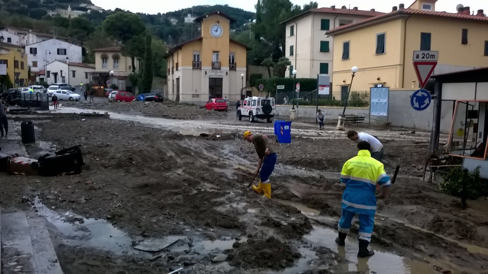 “Dalle due – racconta la Governatrice della locale Misericordia, Elena Del Corso – ha iniziato a piovere fortissimo e si è allagato tutto. E’ venuta giù una colata di acqua, fango e detriti che ha invaso le strade, allagato i piani bassi delle case e fatto tantissimi danni. Ci sono auto distrutte, alcune finite dentro le case, muretti crollati e mezzo metro di fango e detriti in strada. E’ una situazione tremenda.