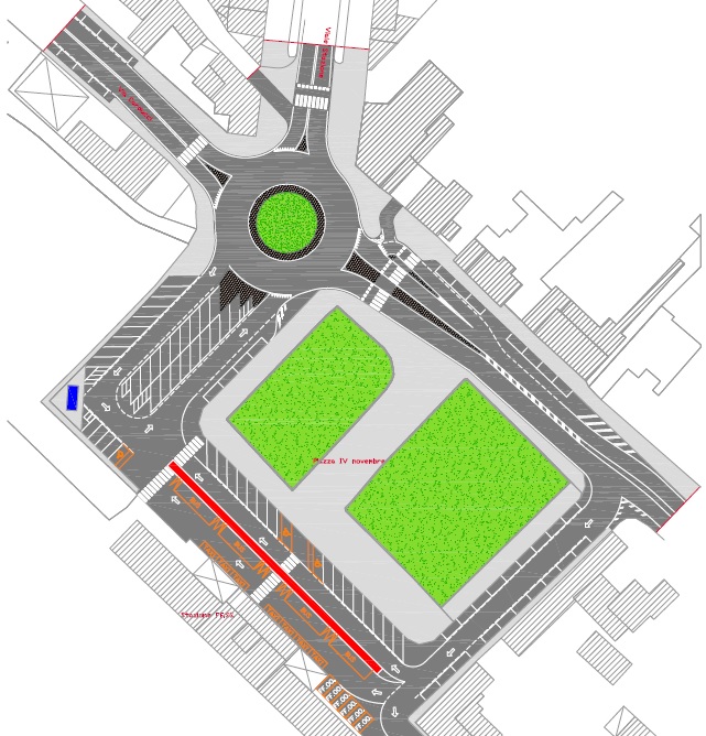 L’intervento, interamente finanziato dal comune per un importo di 305mila euro, prevede l’eliminazione degli impianti semaforici all’incrocio fra viale della Stazione e via Carducci e fra via Pellegrini e piazza IV Novembre