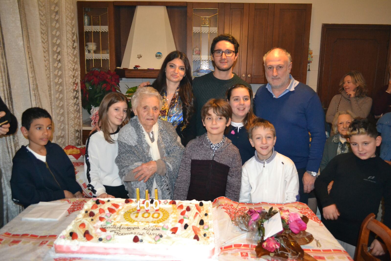C’erano tutti alla festa di compleanno della signora Maria Gabrielli, conosciuta da tutti come Franceschina, i figli Franco e Gabriella, i quattro nipoti, i tre bisnipoti e poi amici, parenti, e una parte di Montignoso che ha voluto salutare con un augurio e un abbraccio Maria e il suo secolo appena trascorso.