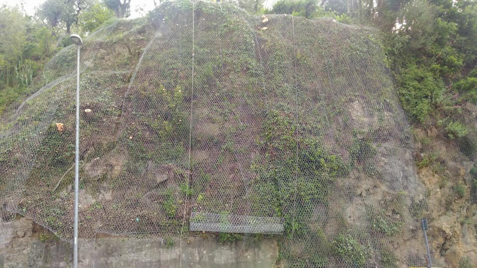 Si stanno infatti svolgendo le operazioni di stesura e ancoraggio alla parete delle reti paramassi per contenere il rischio di caduta massi.