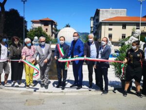 TAGLIO DEL NASTRO QUESTA MATTINA PER LA FONTANA DI PIAZZA LIBERAZIONE A MASSA.
