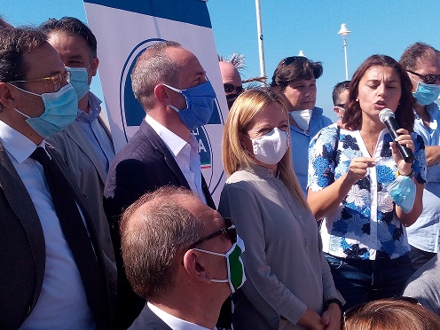 Doveva essere solo un check con i giornalisti invece è stato un bagno di consensi. Tante persone ad accogliere Giorgia Meloni arrivata stamani a Marina di Massa per sostenere i candidati al consiglio regionale di fratelli d’Italia. Alessandro Amorese, Umberto Zangani, Manuela Aiazzi e Romina Baldoni. Presente anche il sindaco Francesco Persiani e i consiglieri comunali Bruno Tenerani e Massimo Evangelisti. “La visita del leader di Fratelli d’Italia è un segnale di attenzione molto importante per il territorio – ha sottolineato Marco Guidi, coordinatore provinciale Fratelli d’Italia – è la dimostrazione di come Fratelli d’Italia voglia impegnarsi affinché le necessità della provincia apuana diventino centrali in Toscana”. Con lei anche Susanna Ceccardi candidata alla presidenza per il centro destra. Il leit motiv di entrambe è stato che la toscana sta cambiando, non è più un feudo rosso e i cittadini chiedono un cambiamento. Tanti applausi e tanti i simpatizzanti che l’hanno attesa ed acclamata sotto il sole.