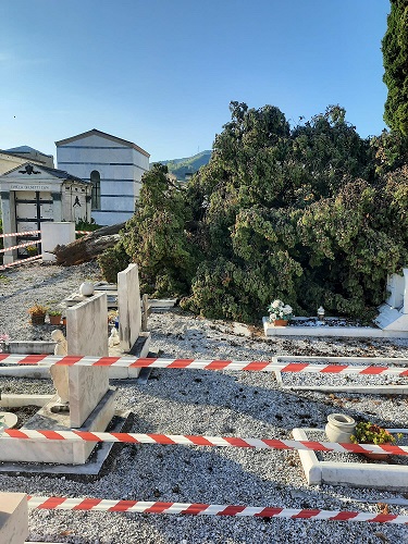 Sono passati circa 20 giorni dall’ evento atmosferico che ha colpito Massa danneggiando luoghi importanti della città, tra questi anche i due cimiteri cittadini rimasti per giorni inaccessibili e poi riaperti come nel caso di quello di Mirteto con aree transennate a causa della caduta di cipressi.