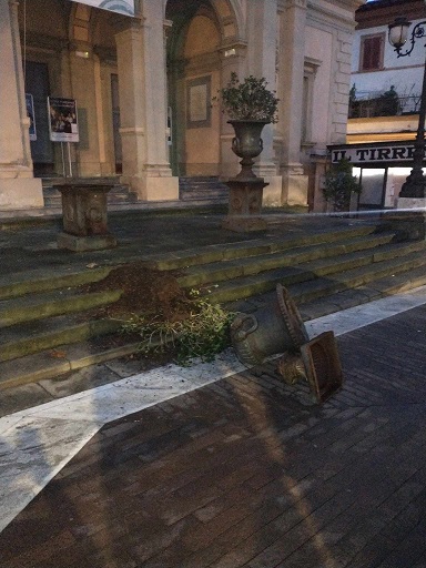 Purtroppo, nella notte, una delle due fioriere è stata vandalizzata e distrutta da individui senza scrupoli e privi di rispetto.