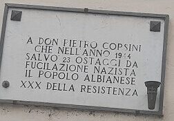 Nella parete esterna della chiesa parrocchiale di San Martino è stata posta nel trentesimo della liberazione una lastra commemorativa; riporta la dedica commemorativa del popolo di Albiano al parroco don Pietro Corsini ‘’ A Don Pietro Corsini che nell’anno 1944 salvò 23 ostaggi da fucilazione nazista . il popolo albianese. XXX della resistenza. Dunque – conclude il sindaco – sabato partecipiamo compatti.’’