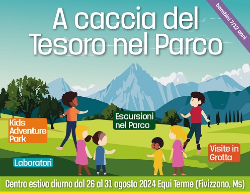 Dopo le escursioni che si sono svolte nei giorni scorsi grazie ad Associazione Circolo Legambiente Lunigiana Sostenibile Aps, è in programma “A caccia dei tesori nel Parco”, il campo estivo giornaliero organizzato con il contributo e la collaborazione del Comune di Fivizzano dedicato a 18 bambini dai 7 ai 12 anni, che si svolgerà da lunedì 26 agosto a sabato 31 agosto. Campo base il Centro Visite di Equi Terme, con attività nei dintorni, ogni giorno a partire dalle ore 9:00. (info e 3385814482, segreteria@lunigianasostenibile.it).