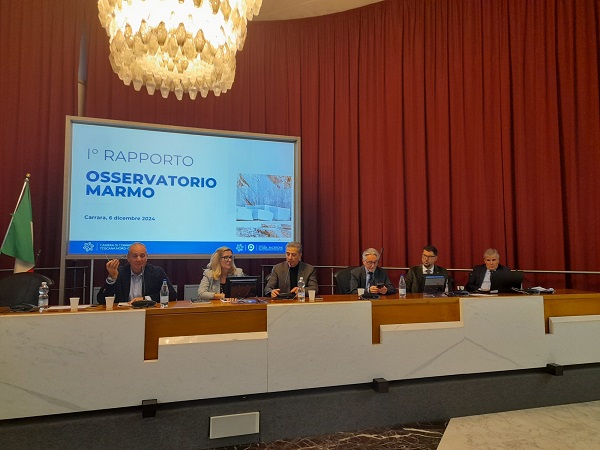 La filiera lapidea di Massa-Carrara conta circa mille imprese che occupano oltre quattromila addetti che esportano in tutto il mondo prodotti grezzi e lavorati per 562 milioni di euro di controvalore. Si tratta di imprese solide, propense ad investire con una redditività netta doppia rispetto agli altri settori della provincia. Sono questi, in estrema sintesi, i risultati del primo rapporto sull’Osservatorio del marmo, presentati il 6 dicembre presso la sede di Carrara della Camera di Commercio della Toscana Nord-Ovest. L’Osservatorio è stato promosso da un accordo tra il comune di Carrara, la Camera di Commercio della Toscana Nord-Ovest e il Consorzio Zona Industriale Apuana, siglato a febbraio 2024. Questo organismo ha l’obiettivo di fornire una conoscenza approfondita e dettagliata del “sistema lapideo” locale, nelle sue fasi di escavazione, lavorazione e commercializzazione. Al focus sono intervenuti il presidente della Camera Valter Tamburini, la sindaca del comune di Carrara Serena Arrighi, l’amministratore unico del Consorzio Zona Industriale Apuana Norberto Petriccioli, e i rappresentanti di associazioni di categoria e sindacali.