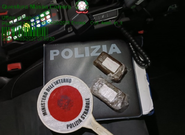 La Polizia di Stato ha arrestato un cittadino romeno di 25 anni che trasportava quasi 200 grammi di hashish.