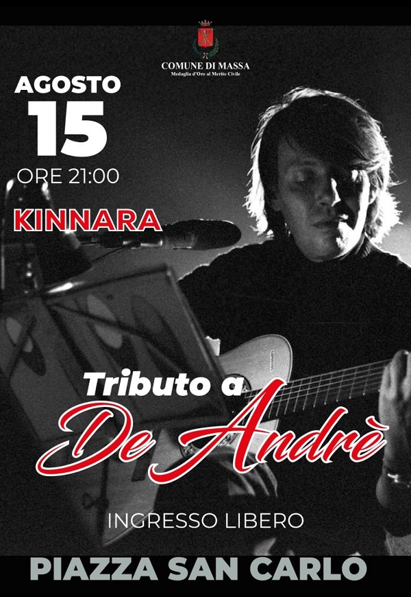 Sarà la suggestiva piazza San Carlo a Massa a fare da cornice, giovedì 15 agosto alle ore 21, al concerto tributo dedicato a Fabrizio De André, icona della musica italiana.