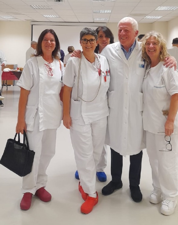 Guido Bianchini insieme ad alcune colleghe dell’ospedale Apuane