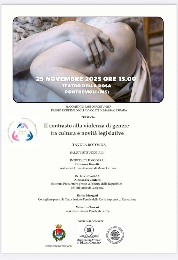 PONTREMOLI – “Il contrasto alla violenza di genere tra cultura e novità legislative”. Tavola rotonda ore 15.00 Teatro della Rosa