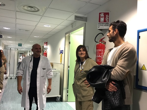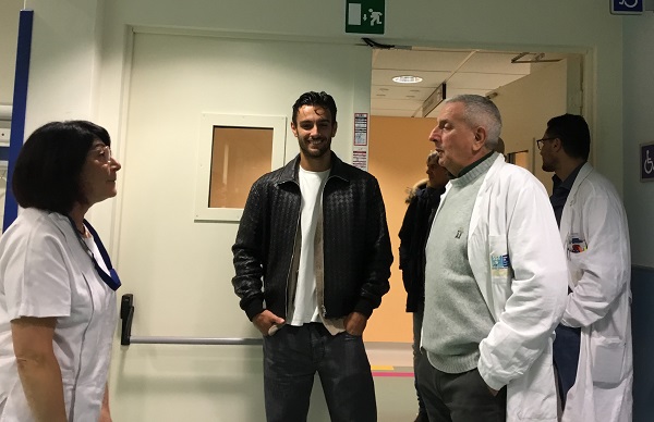 Ad accoglierli e a fare gli onori di casa è stato il direttore sanitario della struttura e coordinatore della rete ospedaliera aziendale Giuliano Biselli, che ha guidato l’atleta in una visita attraverso alcuni reparti dell’ospedale.