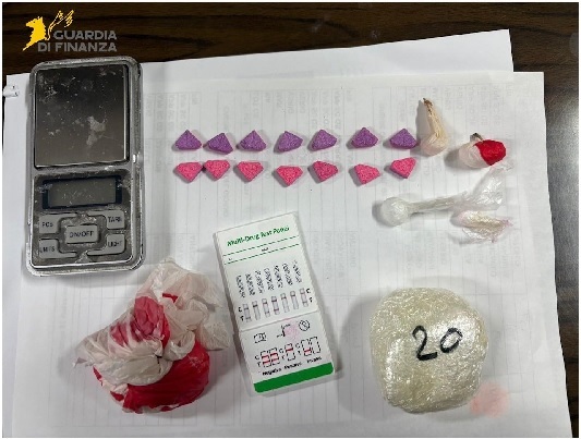 Insospettiti, i finanzieri hanno proceduto a identificare tutti gli appartenenti al gruppo, sottoponendo il soggetto in questione ad un più approfondito controllo antidroga. L’uomo, un quarantanovenne di Santo Stefano Magra, è stato trovato in possesso di 3,60 grammi di cocaina, mentre il contenitore che, nel frattempo, era stato recuperato dai militari, è risultato contenere 10 pasticche, dal cui esame è emersa la positività al principio attivo della MDMA, comunemente nota come ecstasy, sostanza sintetica che produce effetti di eccitamento e, al tempo stesso, di natura psichedelica.